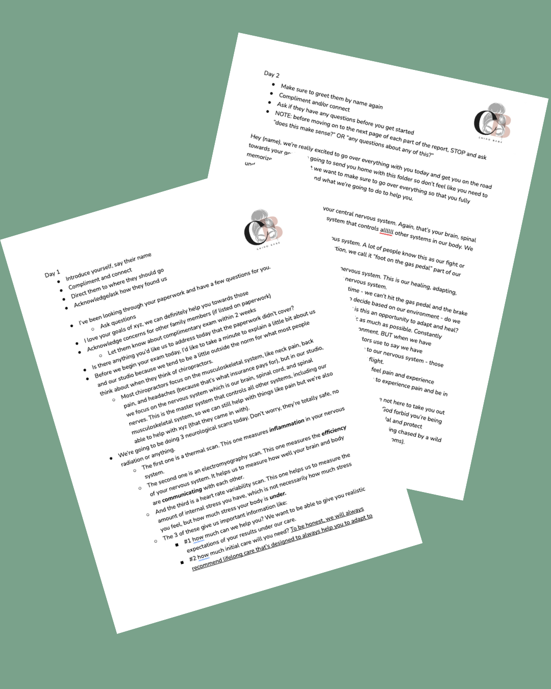 I NEED THATThe loose Day 1 + Day 2 scripts that helped me educate my patients & give me an 80%+ retention rate